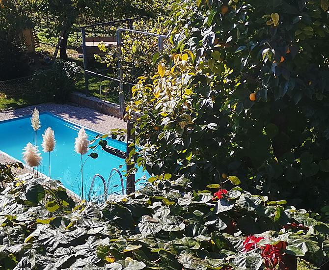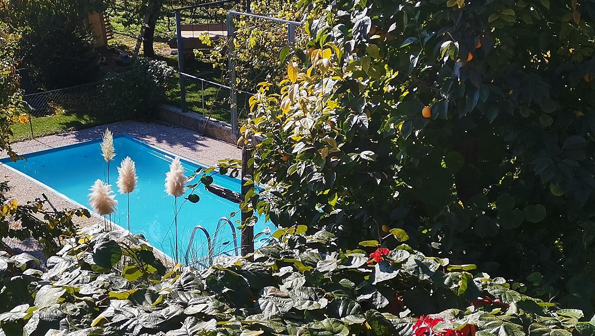 - Odpočinek uprostřed ovocných stromů s bazénem a zahradou.