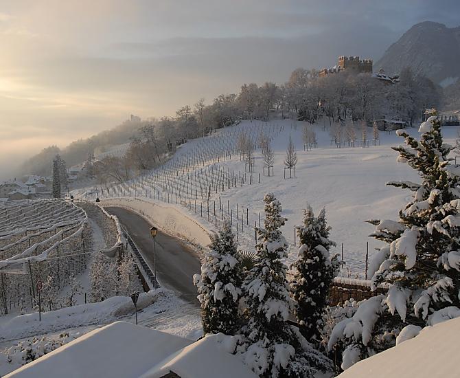 - zahrada s fantastickým výhledem na Bolzano a na Schlern
