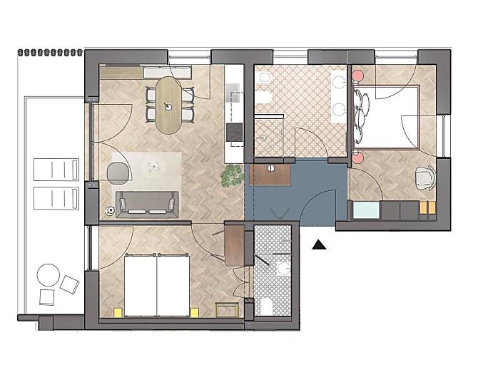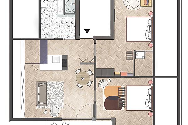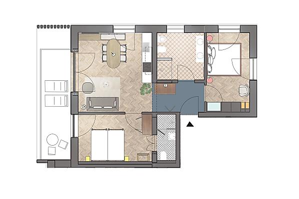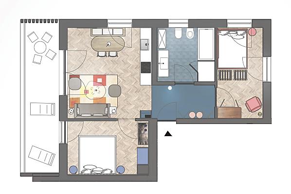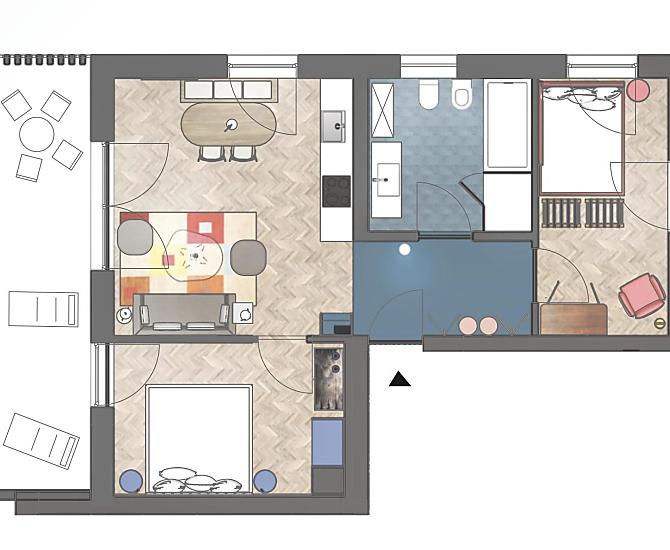 2-3 osoby (2 pevných lůžek) 58m²