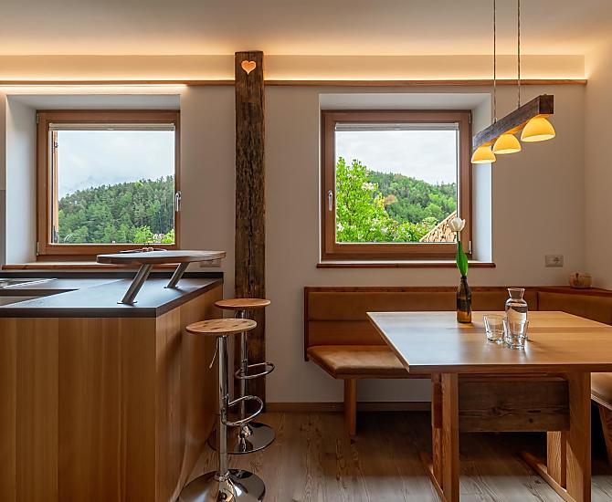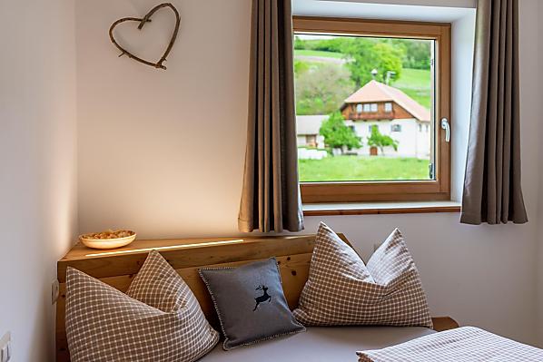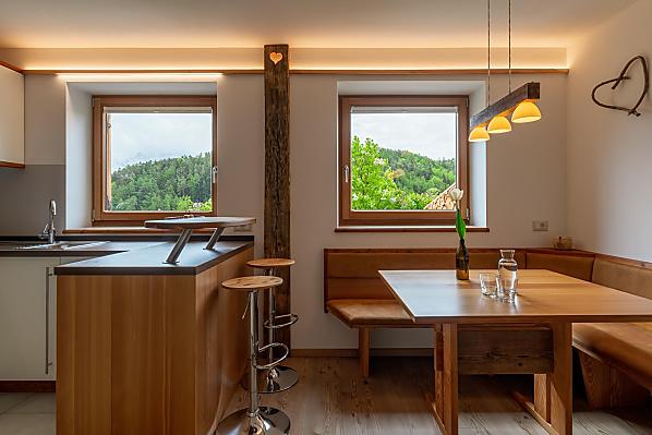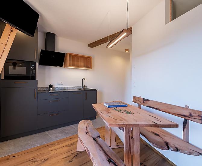 Útulné, komfortní a světlem zalité rekreační apartmány, které si ve své dílně postavil sám sedlák s velkým množstvím dřeva - od rustikálního až po moderní - se nacházejí v samostatně stojící hospodářské budově statku.
