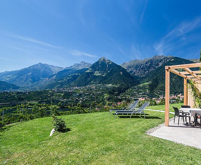 Náš statek se nachází na klidném a slunném svahu ve směru na St. Georgen v obci Schenna. Naše rekreační apartmány se nacházejí uprostřed našeho jabloňového sadu s nádherným panoramatickým výhledem na okolní hory oblasti Burggrafenamt, lázeňské město Merano a údolí Etschtal. Mírné klima ve spojení s nezaměnitelnou krásou naší alpské krajiny vás láká k četným horským túrám, výletům nebo pohodovým procházkám po Schenně a okolí. Večer můžete den zakončit pohodlně na terase u sklenky vína. Jihotyrolská zemitost a tradice v kombinaci s rodinnou pohostinností vám zaručí nezapomenutelnou dovolenou na našem statku v Schenně.