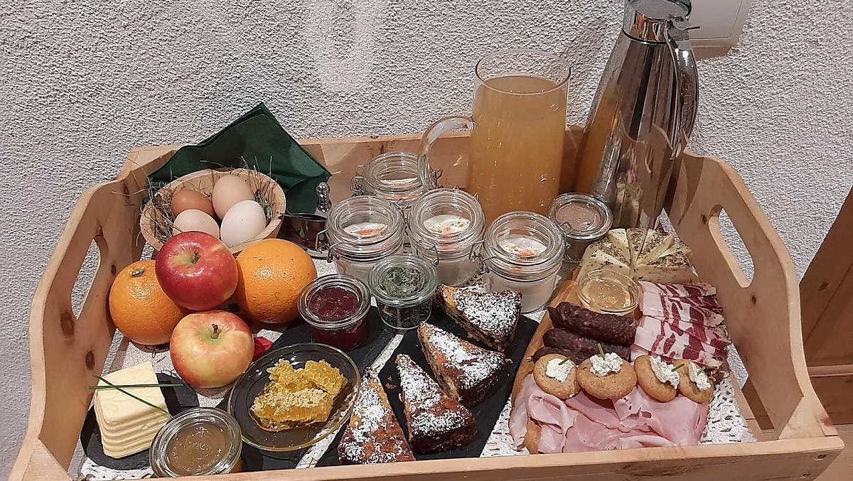 - Snídaně s vlastními produkty ze statku: mléka, jogurt, máslo, ostatní mléčné produkty, vejce, mamelády, sirup, ovocné šťávy, čatní, nakládané dobroty, bylinný čaj, koření z bylinek, chléb, pečivo, čerstvé ovoce podle sezóny