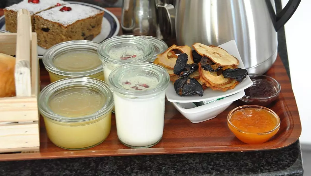 - Snídaně s vlastními produkty ze statku: vejce, mamelády, sirup, ovocné šťávy, sušené ovoce, čatní, nakládané dobroty, bylinný čaj, pečivo, čerstvá zelenina podle sezóny, čerstvé ovoce podle sezóny