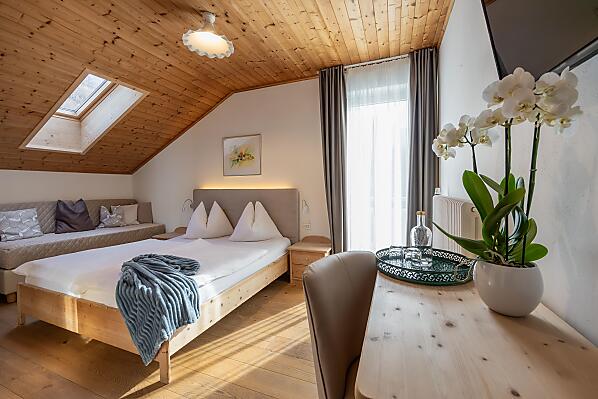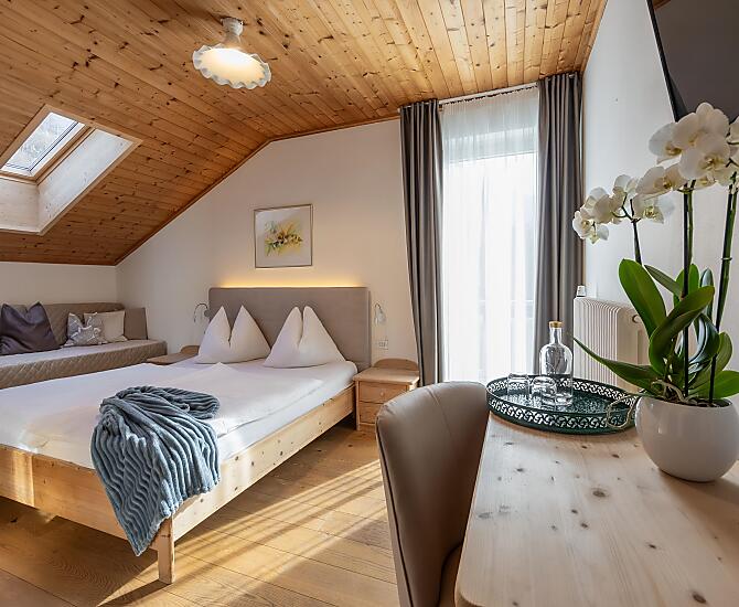 Naše komfortní pokoje a rekreační apartmány s velkým důrazem na detail nabízejí ty nejlepší podmínky pro vaši zaslouženou dovolenou u bran do Dolomit, které jsou na seznamu světového dědictví Unesco.