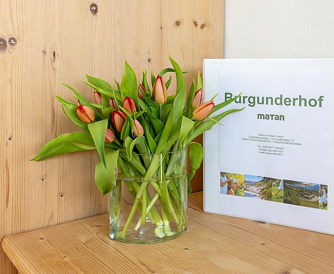 Burgunderhof se nachází na klidném místě uprostřed malebných vinic s nádherným panoramatickým výhledem na celou jihotyrolskou nížinu. Ráj pro milovníky přírody a rodiny hledající klid a odpočinek. Nachází se také přímo u cyklostezky podél staré úzkokolejky do údolí Flamstal („alte Fleimstalbahn“), a je proto ideálním výchozím bodem pro mnoho cyklistických výletů.