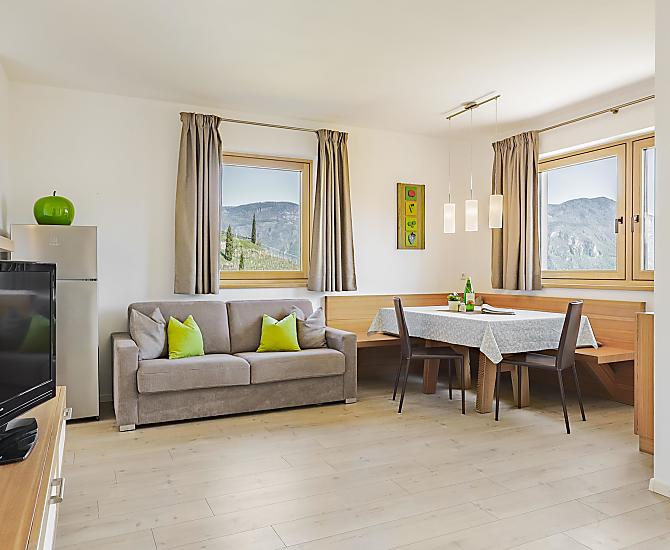 Na ovocnářském a vinařském statku Egarter se nacházejí tři moderní rekreační apartmány. Nachází se uprostřed vlastních vinic v Missianu, idylicky zasazených do trojúhelníku eppanských hradů, a nabízí nádherný výhled na Dolomity a jihotyrolské hlavní město Bolzano. Díky své centrální poloze v oblasti dolního toku řeky Etsch (oblast Überetsch) je statek ideálním výchozím bodem k pěším túrám a výletům do všech koutů země. Klidné prostředí vybízí k odpočinku a relaxaci, ať už na trávníku ke slunění nebo u bazénu. Statek, kde se dospělí i děti mohou cítit jako doma.