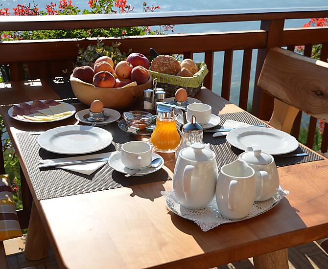 - Snídaně s vlastními produkty ze statku: špek, vejce, med, mamelády, sirup, ovocné šťávy, zelé, bylinný čaj, koření z bylinek, chléb, čerstvé ovoce podle sezóny
