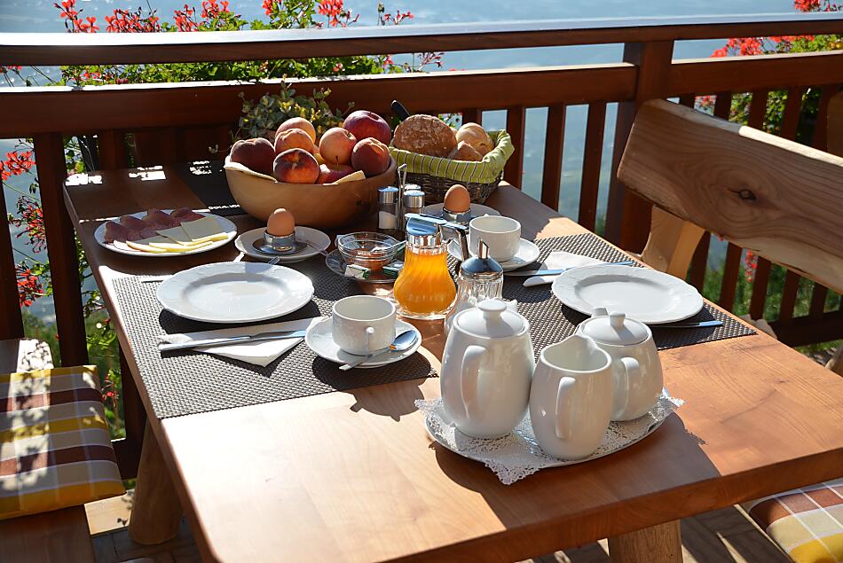 - Snídane s mnoha vlastními produkty na panoramatické terase