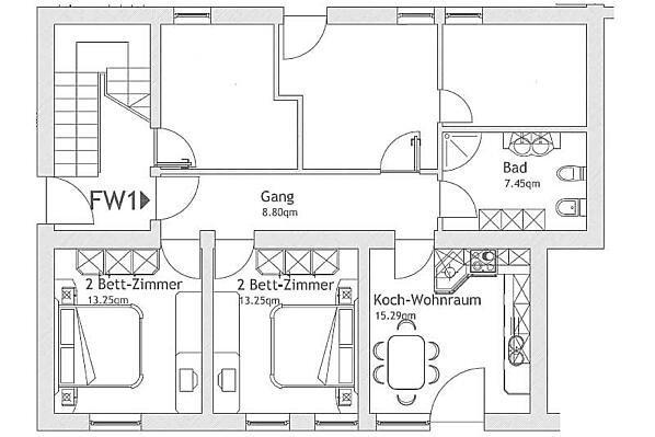 Statek pro rodiny s detmi je kompletne zrekonstruovaný, slunný a centrálne umístený. Ideální výchozí bod pro peší turisty a cyklisty s nádhernou vyhlídkou.