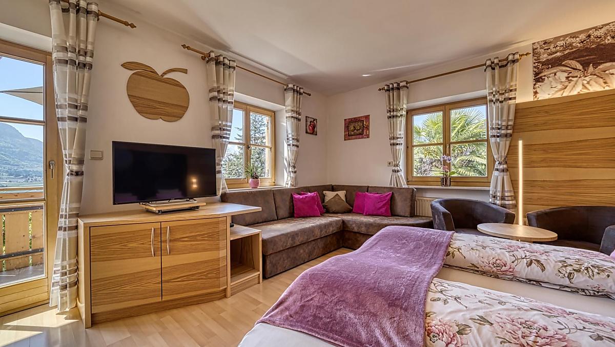 Naše čtyři individuálně navržené apartmány a nově postavená chata Apfel Chalet z roku 2022 s velkou terasou a celoročně vyhřívanou venkovní vířivkou jsou laděny do jablečné tematiky. Jablko je výrazem zdraví a pohody a naším hlavním zájmem je, aby se naši hosté cítili na statku Feldhof jako doma a mohli se odpoutat od každodenního života. Odpočívejte na našich nádherných balkonech orientovaných na jih s panoramatem snů nebo využijte grilovací plochu před domem ke kulinářským zážitkům na dovolené.