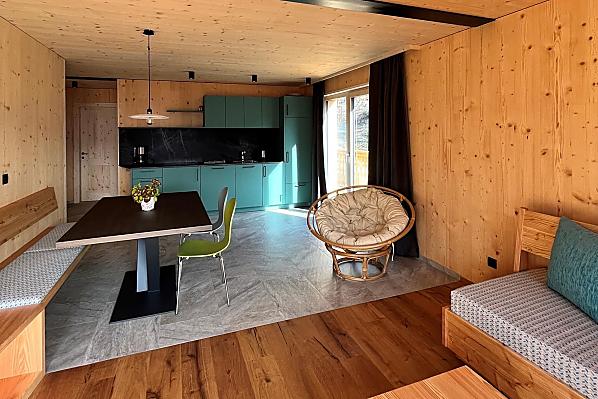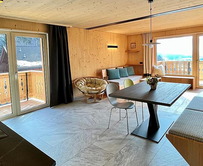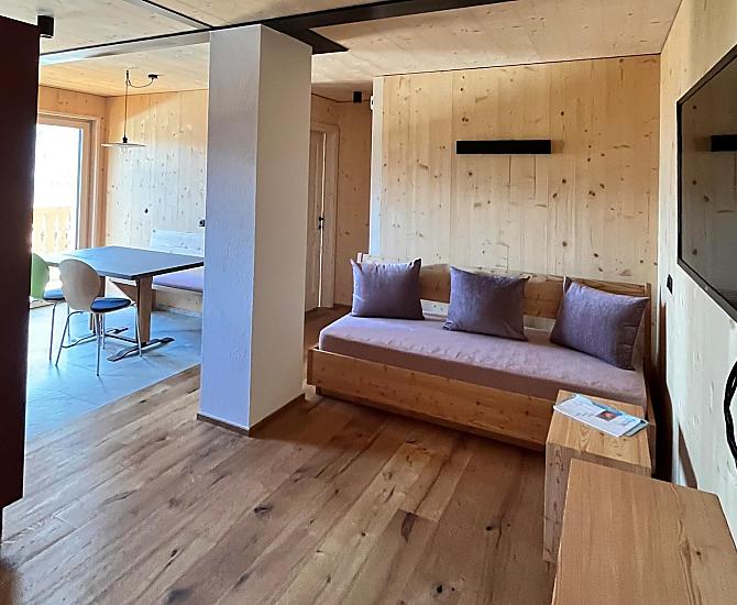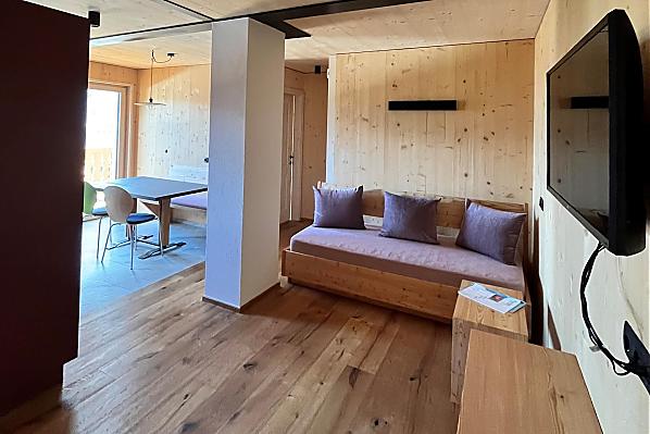 Ekologický statek s dřevěnou konstrukcí a nádherným, ničím nerušeným výhledem z Tauferského údolí na Dolomity je obklopen zelení, a přesto blízko dění.