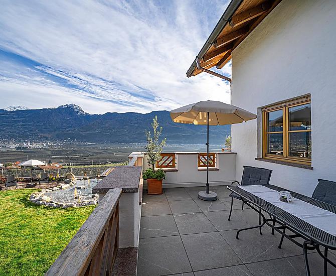 V překrásně klidné a slunné poloze, přitom nedaleko od Tschermsu a v Marlingu, se ve nadmořské výšce 360 m nachází náš rodinný statek. Ovoce a vinařství jsou naší vášní již po generace. Na vyžádání rádi pořádáme prohlídky ovocných sadů a vinic a umožníme vám nahlédnout do našeho každodenního života na statku.