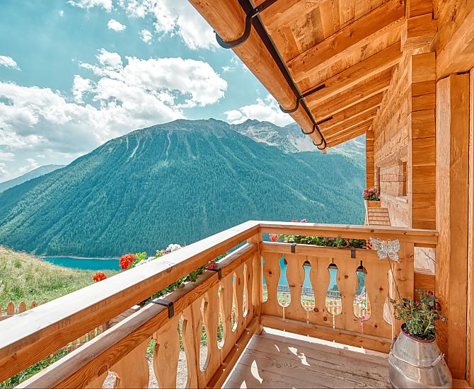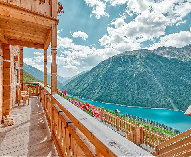 Náš biohorský statek se nachází v nadmořské výšce 1 973 m na slunné straně Schnalstalského údolí, vysoko nad přehradou Vernagt. Z našeho statku se otevírá nádherný panoramatický výhled na přehradu, okolní horský svět a v dálce na obzoru zahlédnete i masiv Latemaru.