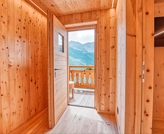 Rekreační dům, ve kterém se apartmány nacházejí, je postaven z masivu modřínu ze Schnalstalu. Vybavení apartmánů tvoří kvalitní nábytek z borovice limba a přírodní materiály. Pod domem najdete dětské hřiště a několik míst k posezení i slunění.