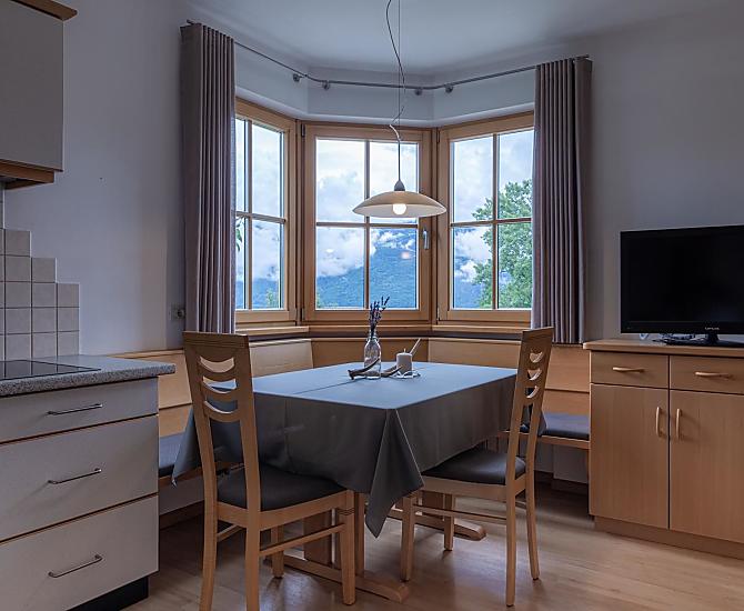Z našeho jablecného a vinarského statku je nádherný panoramatický výhled na Meranskou pánev. Nachází se na náhorní plošine ve výšce 630 m n. m. na klidném a idylickém míste. Nízké pohorí Tisner bylo již v minulosti oblíbené pro své mírné klima, a proto se zde nachází tolik hradu. Poloha je velmi výhodná pro skvelé výlety prímo ze statku. Chcete-li nacerpat nové síly a osvežit se, užijte si po krásné túre naše skvelé prírodní koupalište nebo si proste udelejte den na odpocinek s peknou knihou z naší knihovny. Do velkých mest, Merana a Bolzana, se snadno dostanete za pul hodiny autem nebo vlakem. Existuje také mnoho lesních cest, které mužete prozkoumat na elektrokole a na které vám rádi poskytneme skvelé tipy. V bezprostrední blízkosti (10 minut pešky) se nachází krásný kostel sv. Kryštofa, jehož vež pochází ze 13. století, nebo hodinu pešky kostel sv. Hippolyta s 360stupnovým panoramatickým výhledem, ke kostelu vede kontemplacní stezka, sv. Hippolyt je považován za jednu z nejlepších vyhlídek.