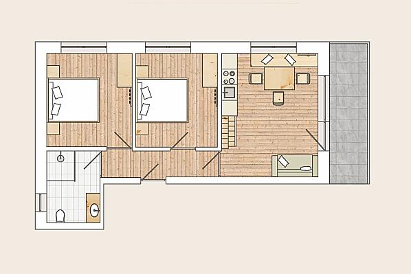 2-6 osoby (6 pevných lůžek) 76m²
