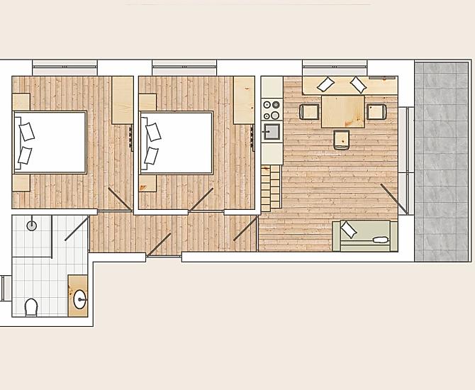 2-5 osoby (4 pevných lůžek) 62m²