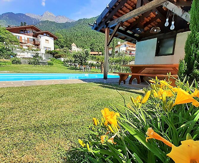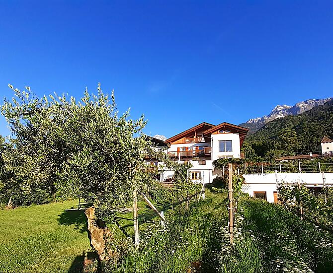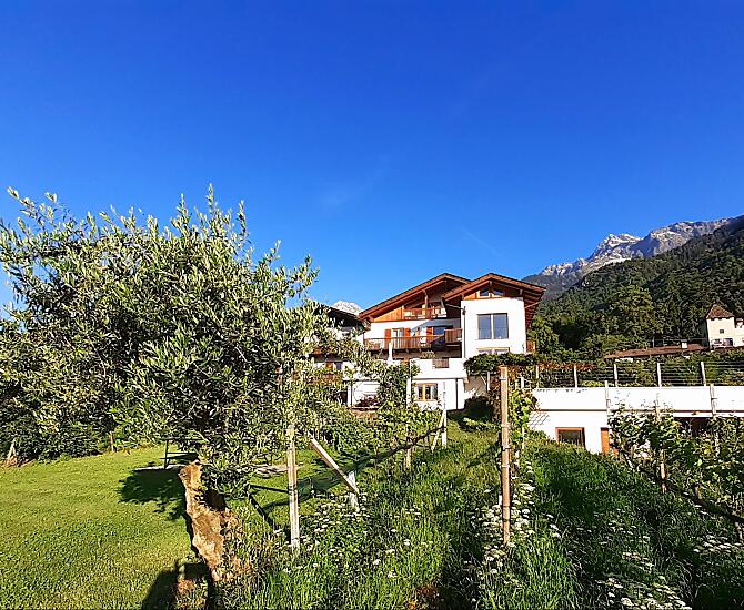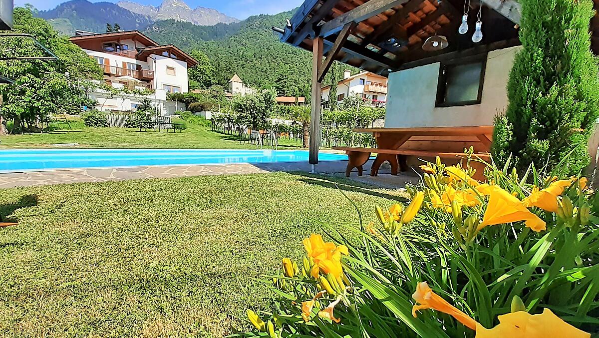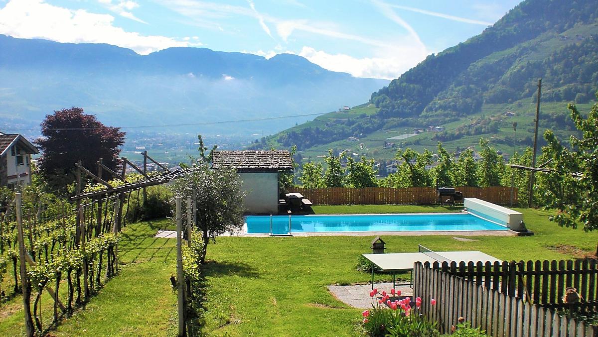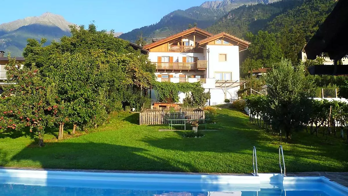 Náš ovocnárský a vinarský statek se nachází v malém ráji prímo nad centrem Algundu. Náš bazén s velkým trávníkem ke slunení uprostred vinic vybízí ke snení a relaxaci. Náš statek je ideálním výchozím bodem k procházkám (200 m vzdálená stezka Waalweg) a nárocným horským túrám. Klidná, slunná poloha a nádherný panoramatický výhled uciní vaši dovolenou nezapomenutelnou.