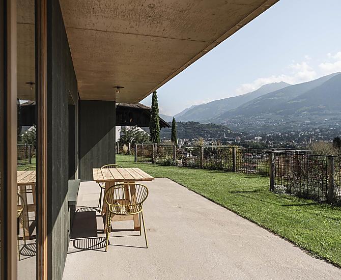 Na venkove... v klidu a na samote v kopcích Marlingu a pritom v dosahu kulturního mesta Meran. Nove postavené apartmány s prostornými terasami se nacházejí uprostred našich vinic a sadu. Moderní architektura, starý selský nábytek, spousta dreva a útulné pokoje,v nichž se mužete uvelebit. A venku bylinky a kvetiny se všemi svými barvami a vunemi, zatímco vy odpocíváte na terase nebo si dáváte útulnou snídani vedle naší bylinkové zahrady. Nebo se radeji ponoríte do bazénu a vychutnáte si úchvatný výhled z prilehlého trávníku. At už si vyberete cokoli, najdete místo, které odráží nás a náš zpusob života a spojuje dustojnou venkovskou každodennost s netradicní novotou. Místo, kde se cítíte dobre všemi smysly a kde si každý najde svuj osobní prostor.