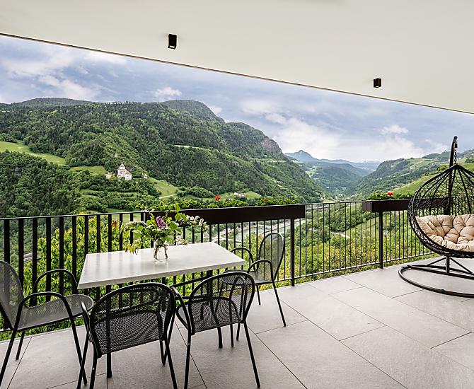 - nerušený výhled na hrad Trostburg a do údolí Eisacktal