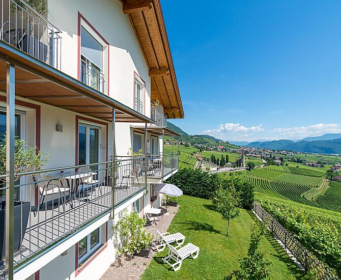 Náš statek se nachází uprostred vlastních vinic odrudy Gewürztraminer. Krome toho vyrábíme Rulandské bílé, Sauvignon a Vernatsch. Hrozny dodáváme do malého rodinného vinarství. Nejvetší zemedelskou cástí je produkce jablek. Od vybudování statku roku 2011 nabízíme našim hostum ctyri komfortní rekreacní apartmány s nádherným panoramatickým výhledem na jihotyrolskou nížinu Unterland.