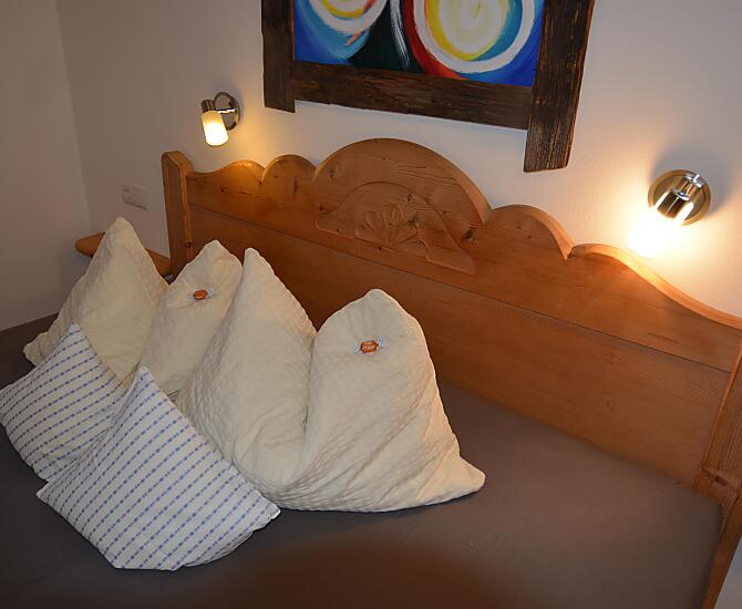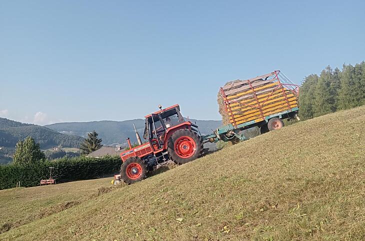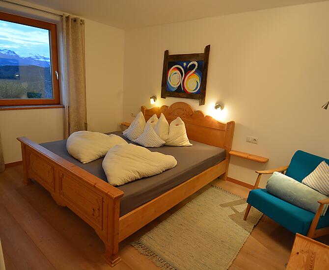Náš statek se nachází v nadmořské výšce 1 100 m na samotě u lesa s nádherným výhledem na Kastelruth. Chováme ovce, koně a slepice. S námi tu žijí také naše kočky Theo a Nelli, osm koní a deset ovcí.