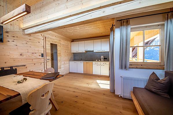 Výhled z okna na slunné strane údolí v nadmorské výšce 1420 m: hory, louky, lesy, rustikální šindelové strechy a výhled na krásné údolí Ultental. Naším statkem žijeme a milujeme jej, proto je pro nás prirozenost, rozmanitost, dobré životní podmínky zvírat a naše tradice velmi duležitá.