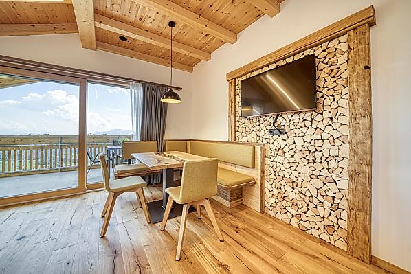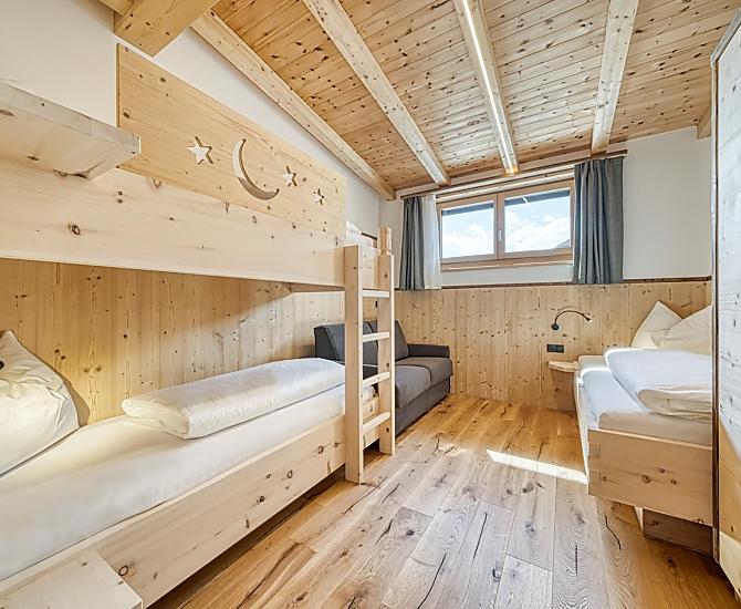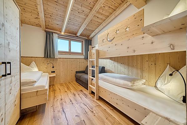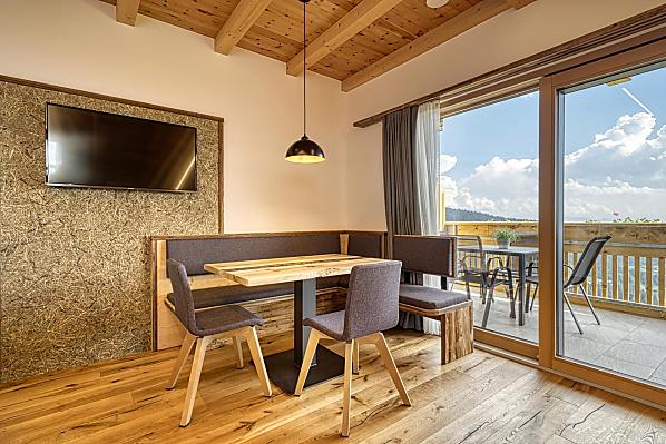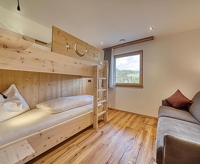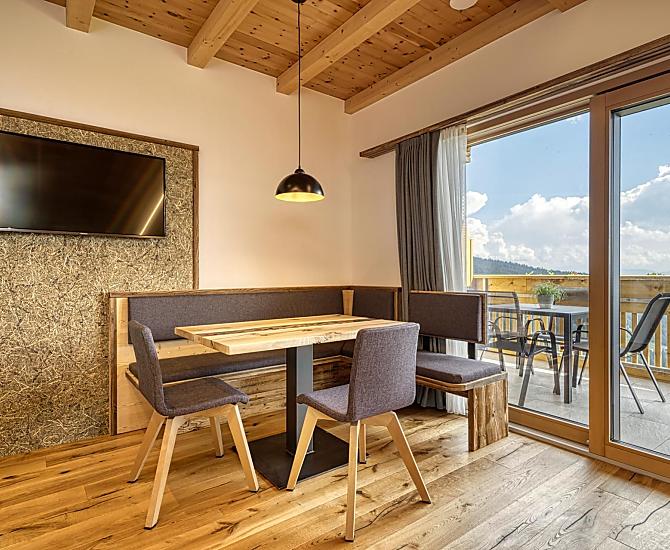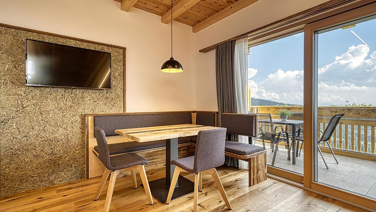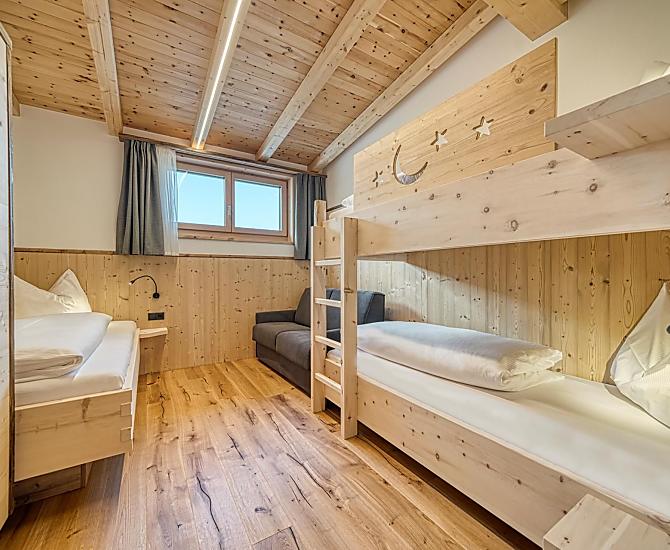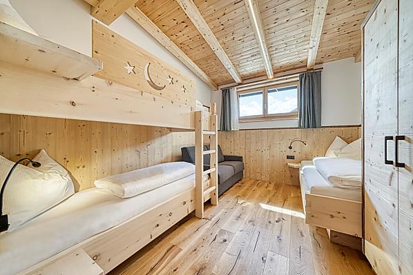 Ubytujte se ve 3 prostorných apartmánech o rozloze 60 m² se spoustou dřevěných obkladů ze švýcarské kamenné borovice a nádherným panoramatickým výhledem. Na děti čeká malé dětské hřiště a různá zvířata, která si mohou pohladit.