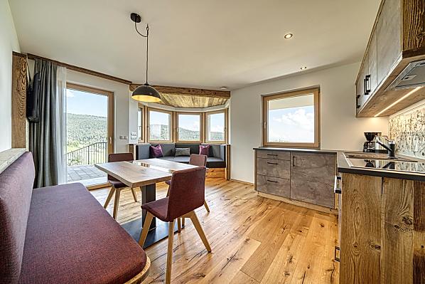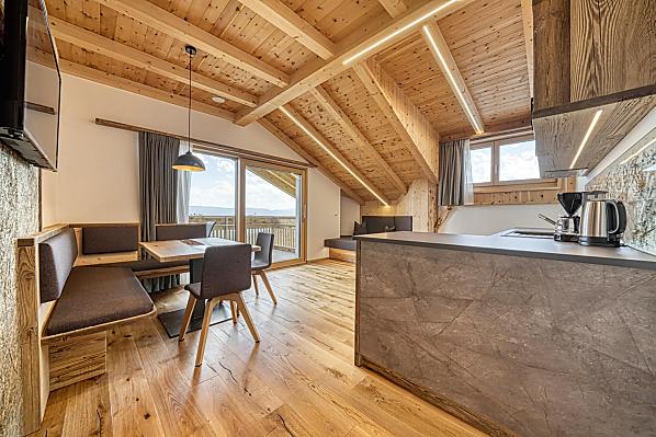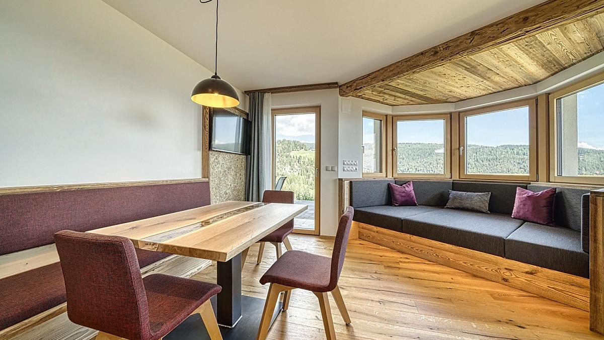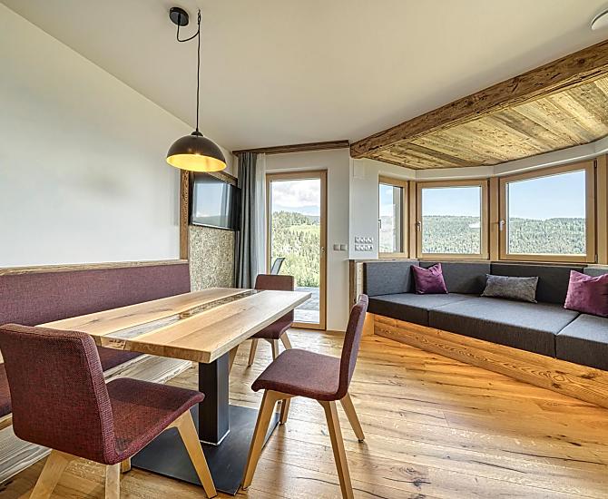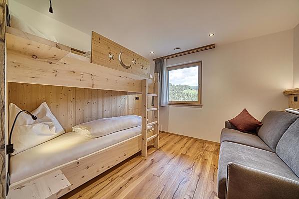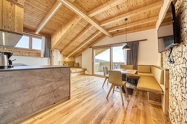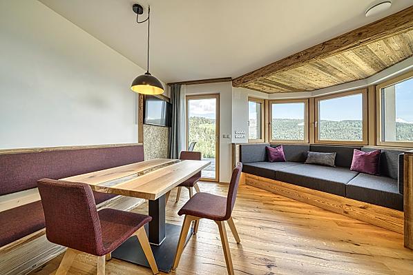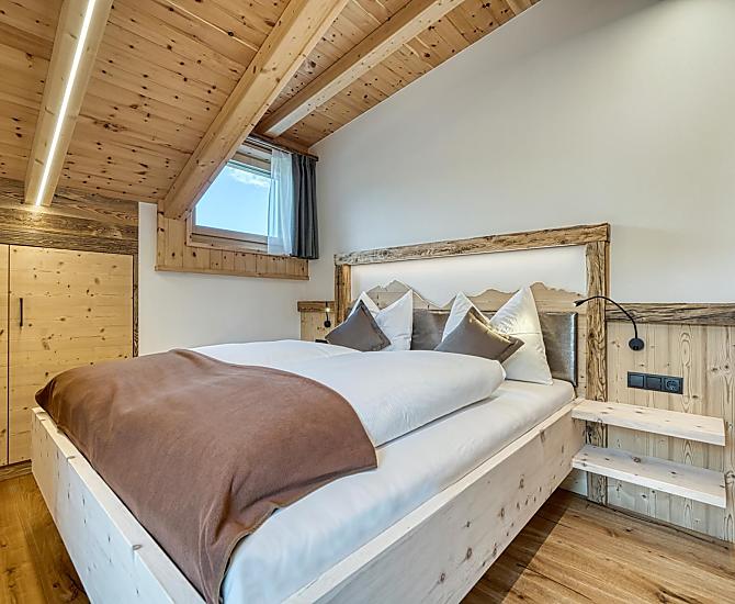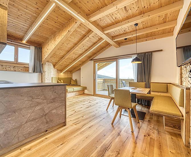 Ubytujte se ve 3 prostorných apartmánech o rozloze 60 m² se spoustou dřevěných obkladů ze švýcarské kamenné borovice a nádherným panoramatickým výhledem. Na děti čeká malé dětské hřiště a různá zvířata, která si mohou pohladit.