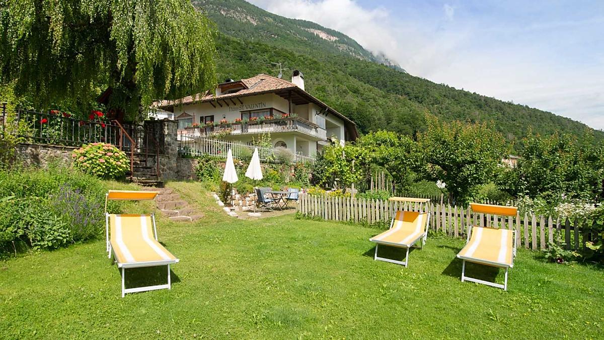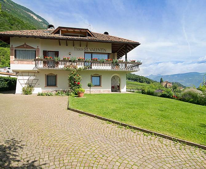 Uprostred idylických vinic, daleko od ruchu a shonu a jen 2,5 km od centra se nachází náš vinarský a ovocnárský statek St. Valentin. Jedinecné panorama s výhledem na obec Eppan, na Bolzano, hlavní mesto našeho kraje, a jedinecné horské vrcholy od Hirzeru pres Schlern až po Weißhorn a Schwarzhorn vám zustane dlouho v pameti. Na udržovaném slunném trávníku našeho domu si mužete opravdu odpocinout a vychutnat si sklenku dobrého vína v príjemné spolecnosti. Prejeme vám pohodové, vzrušující a napínavé dny s rodinou a práteli.