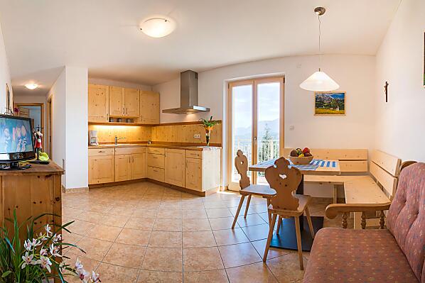 Vinarský statek pro rodiny s detmi se nachází na klidném míste na okraji obce na úpatí Mendelských hor. Naše vinice se nacházejí prímo u Kalternského jezera. K dispozici je také náš vinný sklípek a prodejna na statku s vínem, štávami, džemy, ovocem a zeleninou. Naši hosté velmi ocenují, že si mohou vychutnat krásný výhled, snídani nebo sklenku dobrého vína na terase vinarského statku Haus zur Traube.