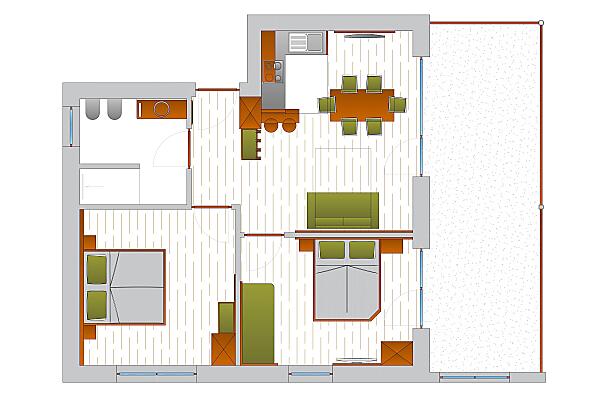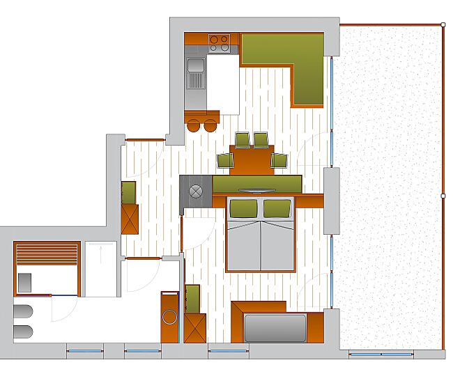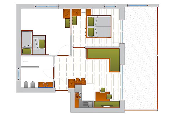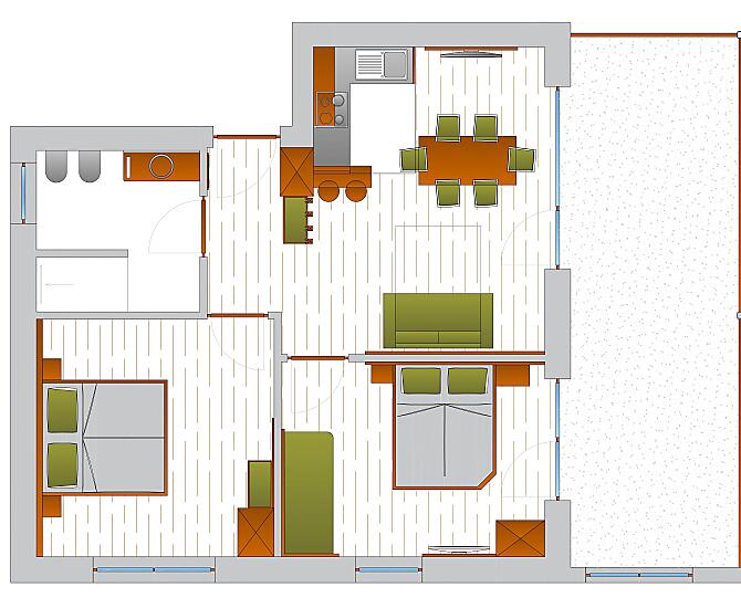 2-7 osoby (4 pevných lůžek) 60m²