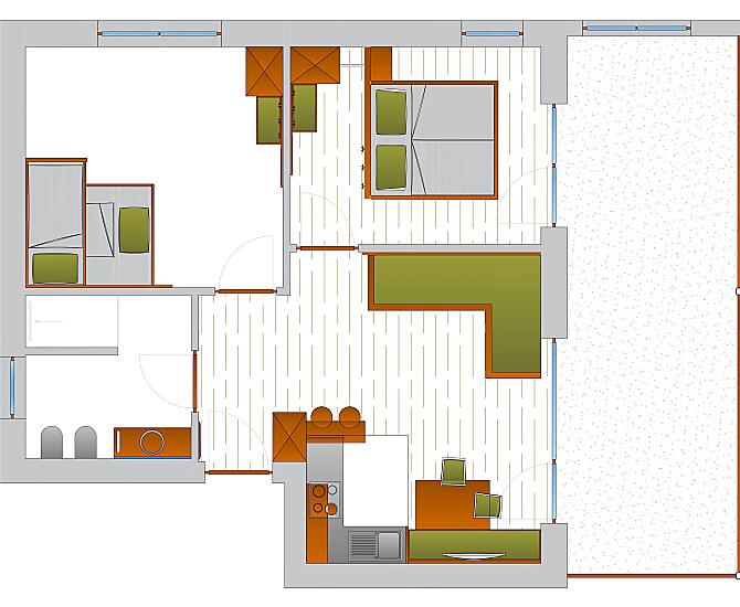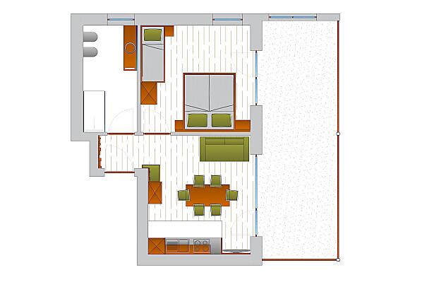 2-7 osoby (5 pevných lůžek) 60m²