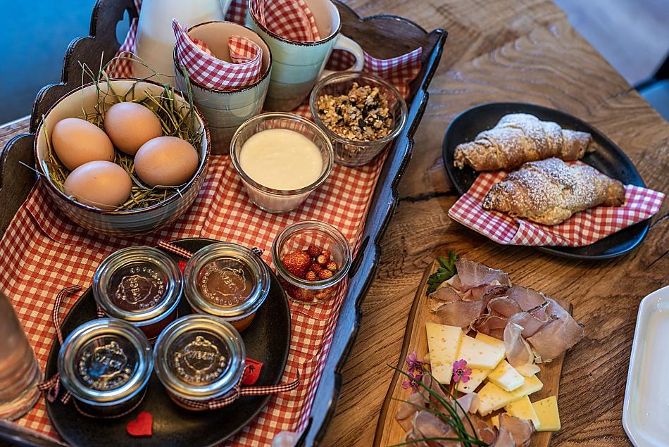- Snídaně s vlastními produkty ze statku: mléka, jogurt, sýr, máslo, ostatní mléčné produkty, špek, uzeniny, vejce, med, mamelády, sirup, ovocné šťávy, chléb, pečivo