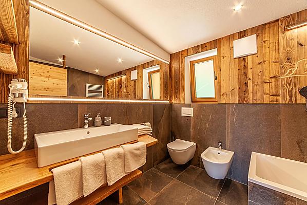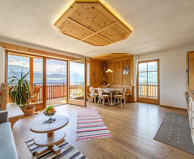 - Velký, zastřešený balkon s výhledem na Dolomity