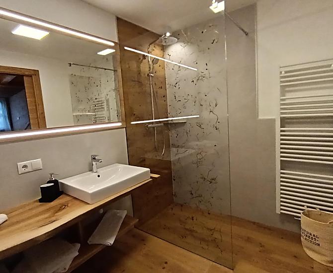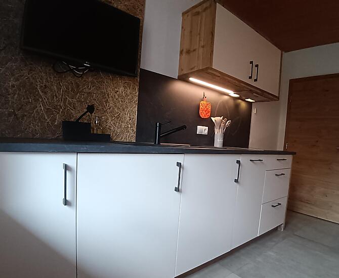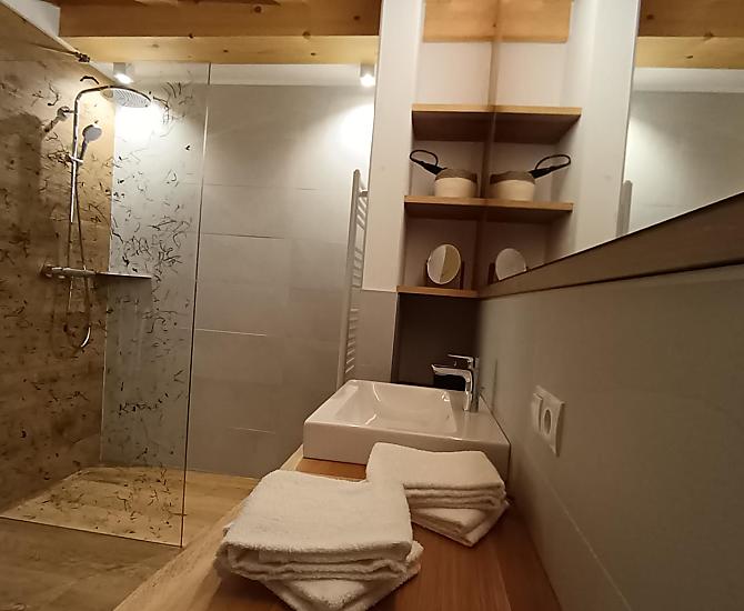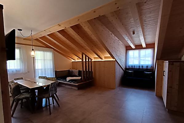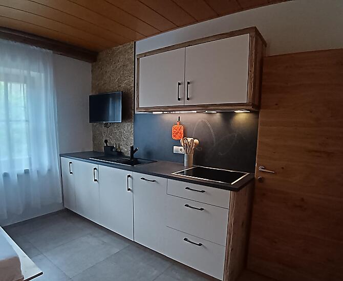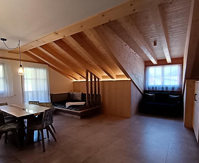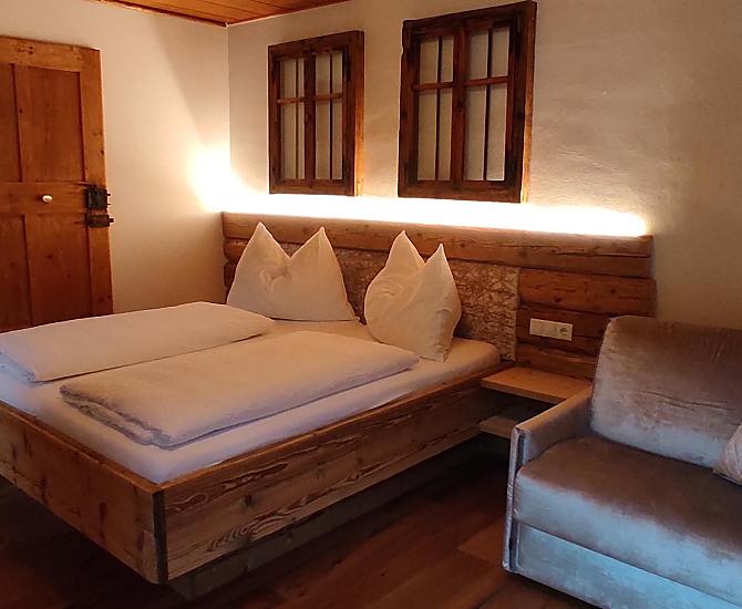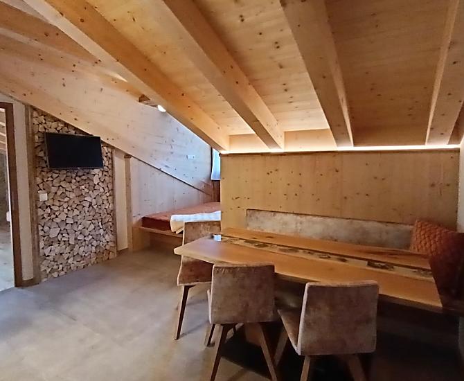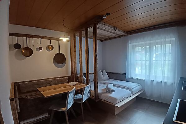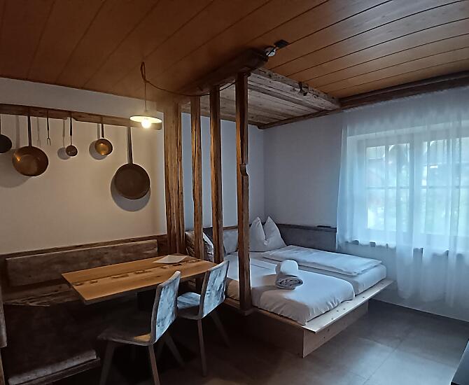 Naše nové rekreační apartmány jsou opravdu velmi útulné. Žádný div: Při výstavbě i zařizování interiéru jsme využili a recyklovali staré dřevo z naší zbourané stodoly.