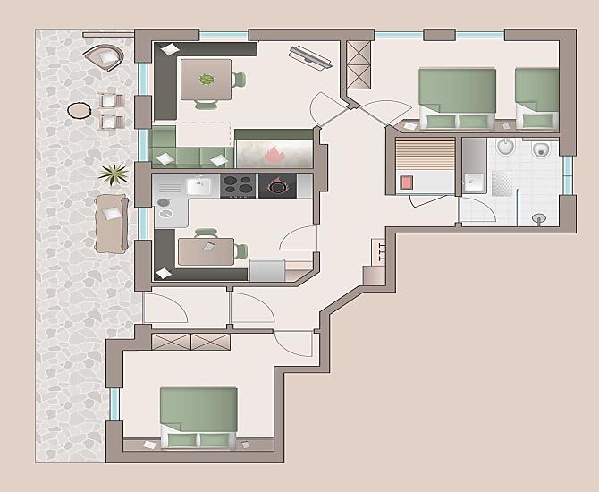 2-8 osoby (5 pevných lůžek) 77m²