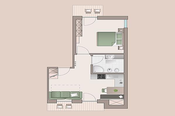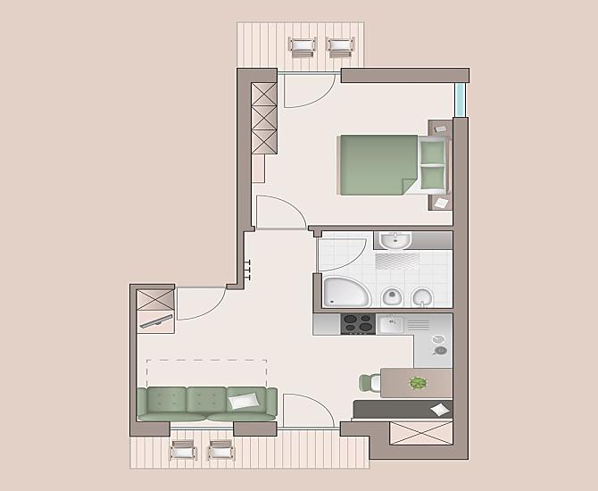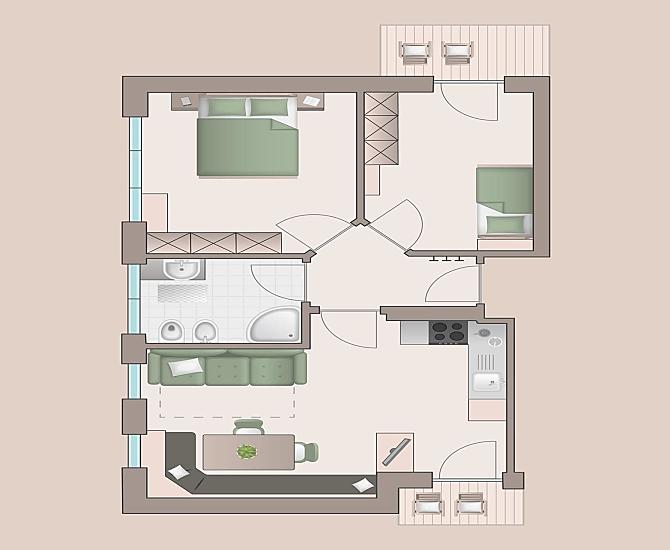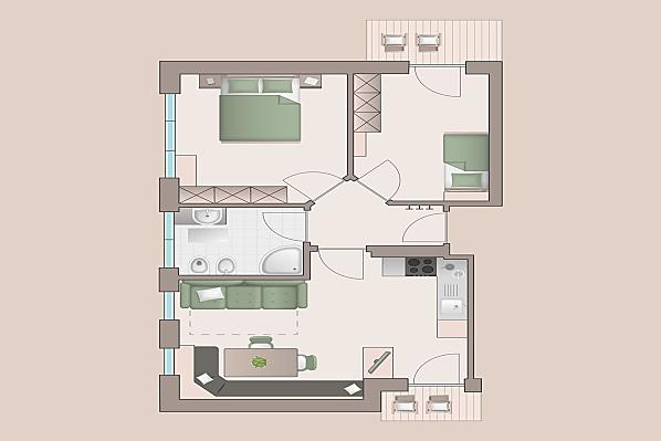 2-6 osoby (4 pevných lůžek) 60m²