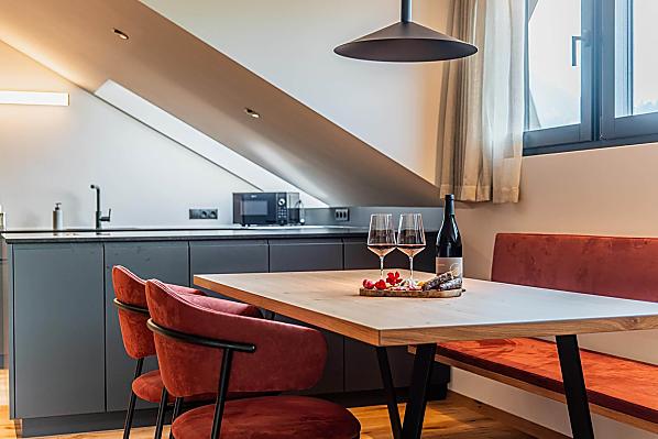 Užijte si nezapomenutelné dny v našem nově zrenovovaném, prosvětleném rekreačním apartmánu, který spojuje moderní komfort s venkovskou idylou. Prostorný, otevřený obytný prostor zve k odpočinku a nabízí nádherný výhled na malebné vinice sv. Magdalény.