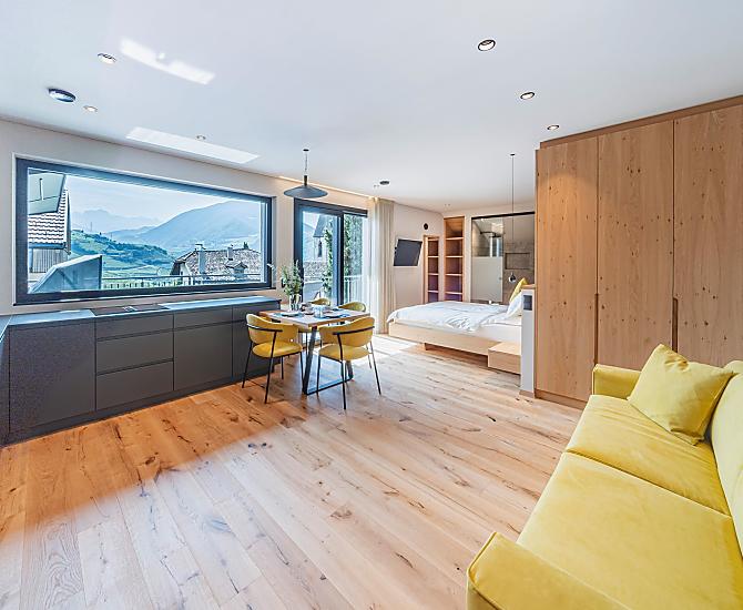 - Prostorné terasy s výhledem na Bolzano a okolní hory