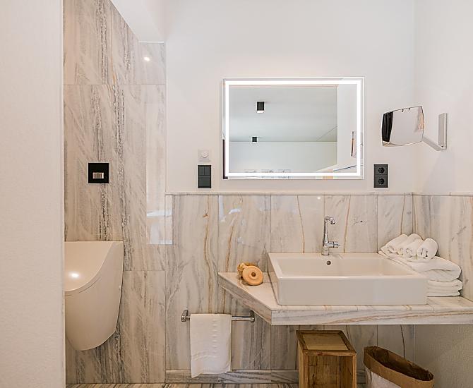 V roce 2021 se rodina přestěhovala do nového statku. Na statku Koasa-Hof čeká na hosty celý prázdninový dům přímo u hostitelů Cinzie a Markuse. Dům byl postaven z regionálních materiálů, částečně přímo z těch, které pocházejí ze statku. Po aktivním dni si můžete odpočinout v malém wellnessu – zážitek z Jižního Tyrolska. Pokud si chcete vychutnat výhled přímo z domu, stačí se s knihou uchýlit na vyhlídkovou plošinu nad statkem. Odtud je možné sledovat hrající si děti na pískovišti, u lezecké stěny nebo u táboráku v kamenném kruhu. Celý prázdninový dům rádi pronajmeme těm, kteří si chtějí obsadit všechny pokoje a postarat se o sebe sami – k dispozici je profesionálně vybavená kuchyně. Pokud si pronajmete jen jeden pokoj, rádi vám připravíme snídani. 30 dní před příjezdem nabízíme volné pokoje se snídaní včetně možnosti využití kuchyně večer.