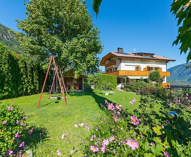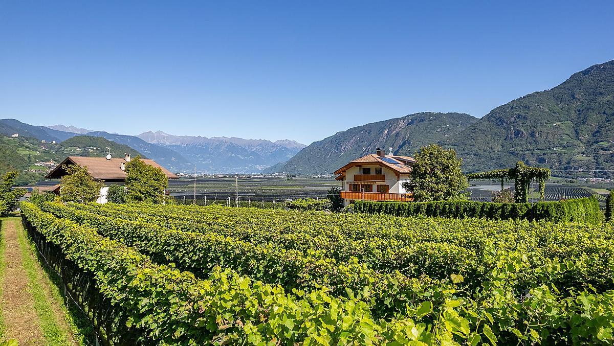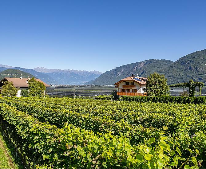 Náš statek je obklopen vinicemi a ovocnými sady s neomezeným výhledem na údolí Etschtal a na Bolzano a Meran.