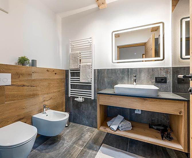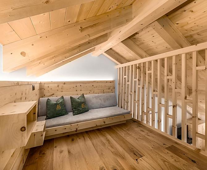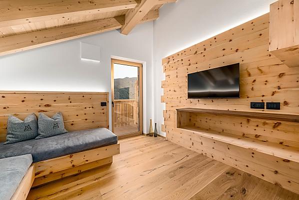 Nově zrekonstruovaný horský statek (původní budovy ze 17. století) na jihozápadním svahu Kronplatz s nádherným výhledem na Dolomity.