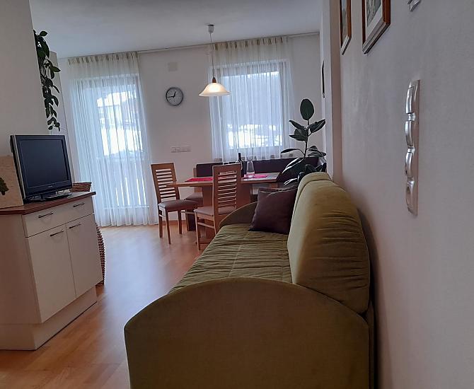 Útulný rekreační apartmán v přízemí s malým balkonem.