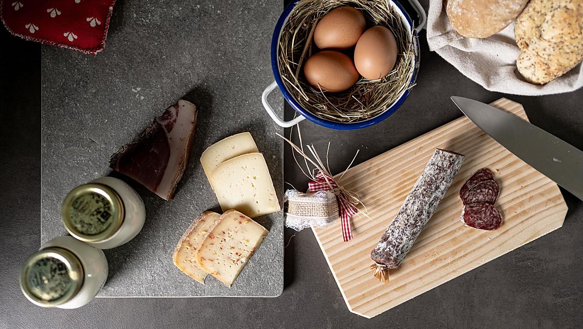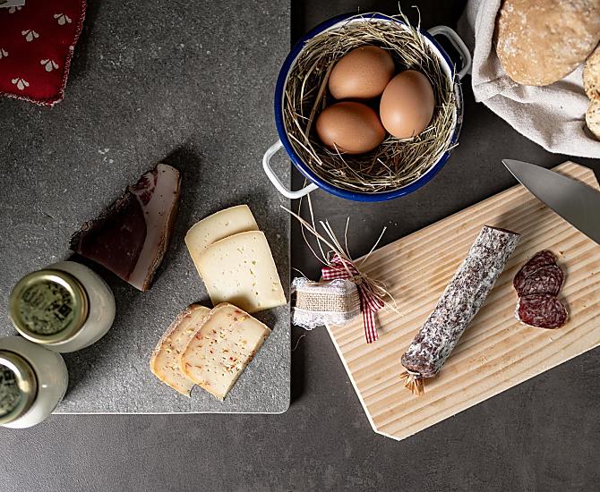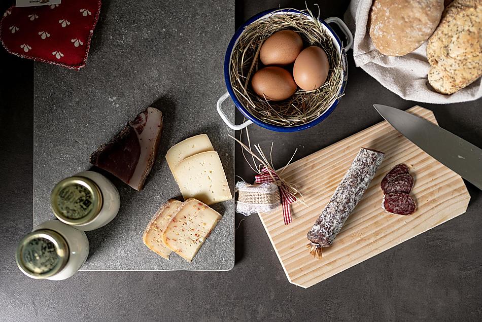 - Snídaně s vlastními produkty ze statku: mléka, jogurt, sýr, špek, uzeniny, vejce, sirup, bylinný čaj, koření z bylinek, čerstvá zelenina podle sezóny