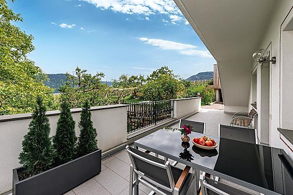 Náš statek je v rodinném vlastnictví již čtvrtou generaci a nachází se na klidném okraji obce Girlan, uprostřed námi obhospodařovaných vinic a jabloňových sadů. Pečlivě udržovaná sluneční louka s pergolou a výhledem na ovocné zahrady a okolní hory přímo vybízí k odpočinku a relaxaci.