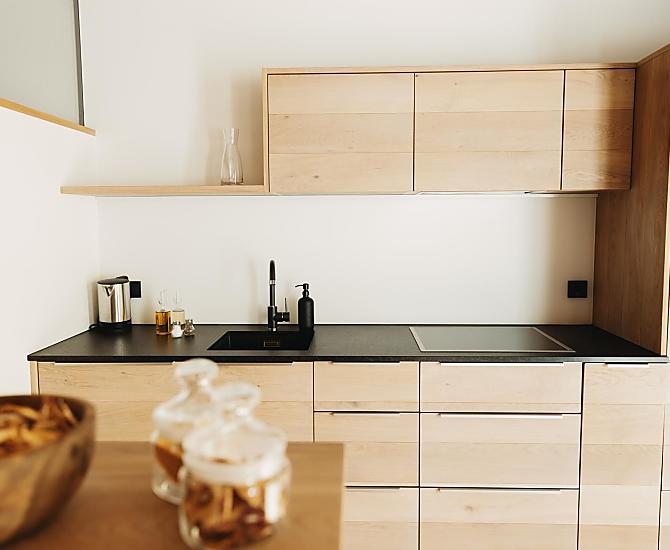 - Statek se stěnami z přírodní jílu a nábytkem z masivního dřeva