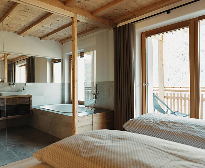 Možná toužíte po místě, kde můžete stále vědomě vnímat přírodu. Náš ekologický statek se nachází v nadmořské výšce 930 metrů a 3 km od St. Leonhardu - uprostřed přírody v obklopení luk a lesů. Krásné útočiště, jste-li milovníky přírody a hledači klidu a pohody, kteří stejně jako my hledají něco výjimečného. Příroda prostupuje i našimi rekreačními apartmány, jejichž hliněné stěny a nábytek z masivního dřeva zajišťují zdravé vnitřní klima. Všechny apartmány mají samostatný vchod a také samostatné terasy a balkony, kde můžete relaxovat a odpočívat.