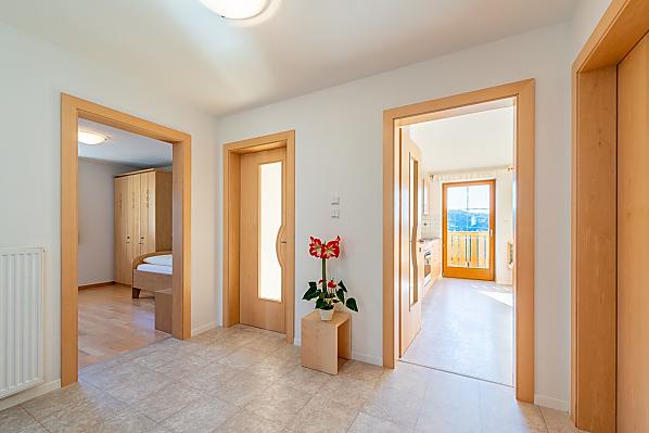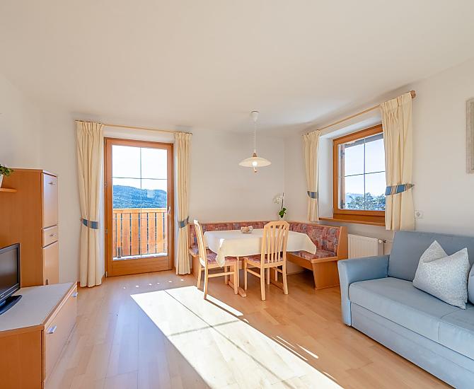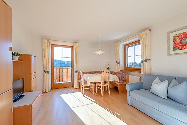 Nove postavený statek v zajímavé poloze v nadmorské výšce 1180 m umožnuje pestrou a pohodovou dovolenou – a to vše bez auta. Užijte si naši klidnou polohu a zároven rozsáhlé možnosti v okolí: za pár minut dojdete k zastávce nedaleké úzkokolejky a ke stanici lanovky do Bolzana. Naším statkem prochází turistická stezka s cíli, jako je jezero ke koupání ve Wolfsgrubenu a známé zemní pyramidy v našem bezprostredním okolí.