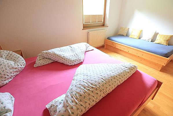 Náš statek se nachází na slunném svahu vedle lyžarské a turistické oblasti Schöneben s krásným výhledem na starou vež kostela Graun, která je videt z dálky vystupující z vod Reschenského jezera. Jsme vzdáleni asi 3 km od obce Reschen, a proto nabízíme denní donášku rohlíku. Mléko a vejce z našeho ekologického statku prodáváme prímo ve dvore.